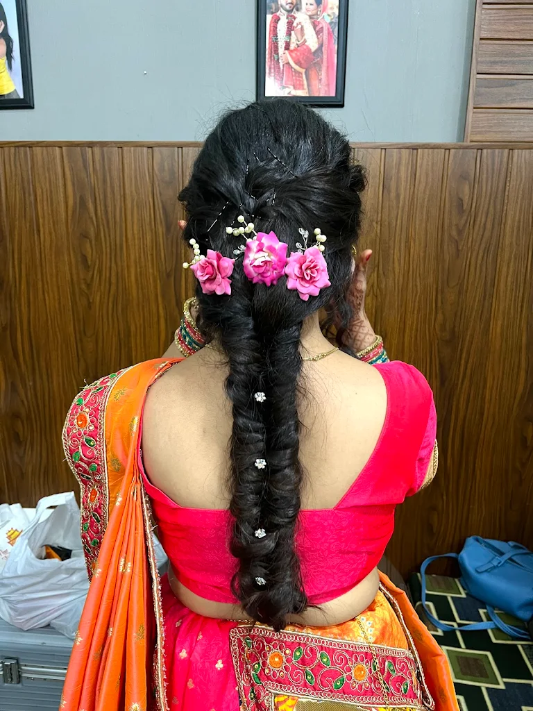 The salon offers expert makeup services, including bridal makeup, engagement looks, reception makeup, and party makeovers. Skilled artists create customized looks based on skin type, facial features, and outfit themes, ensuring a flawless, radiant, and long-lasting finish using quality professional products.